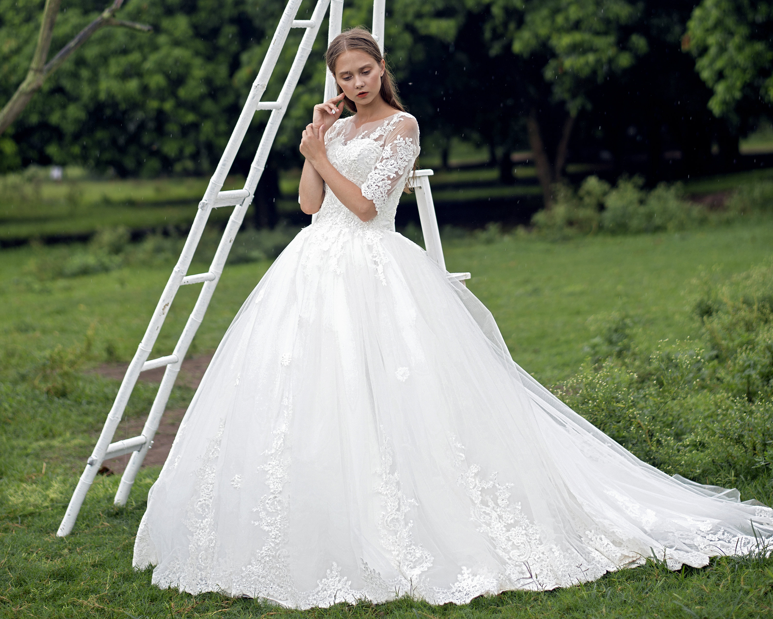 White Lace Princess Wedding Dress | Custom Wedding Ball Gown | Princess Dress