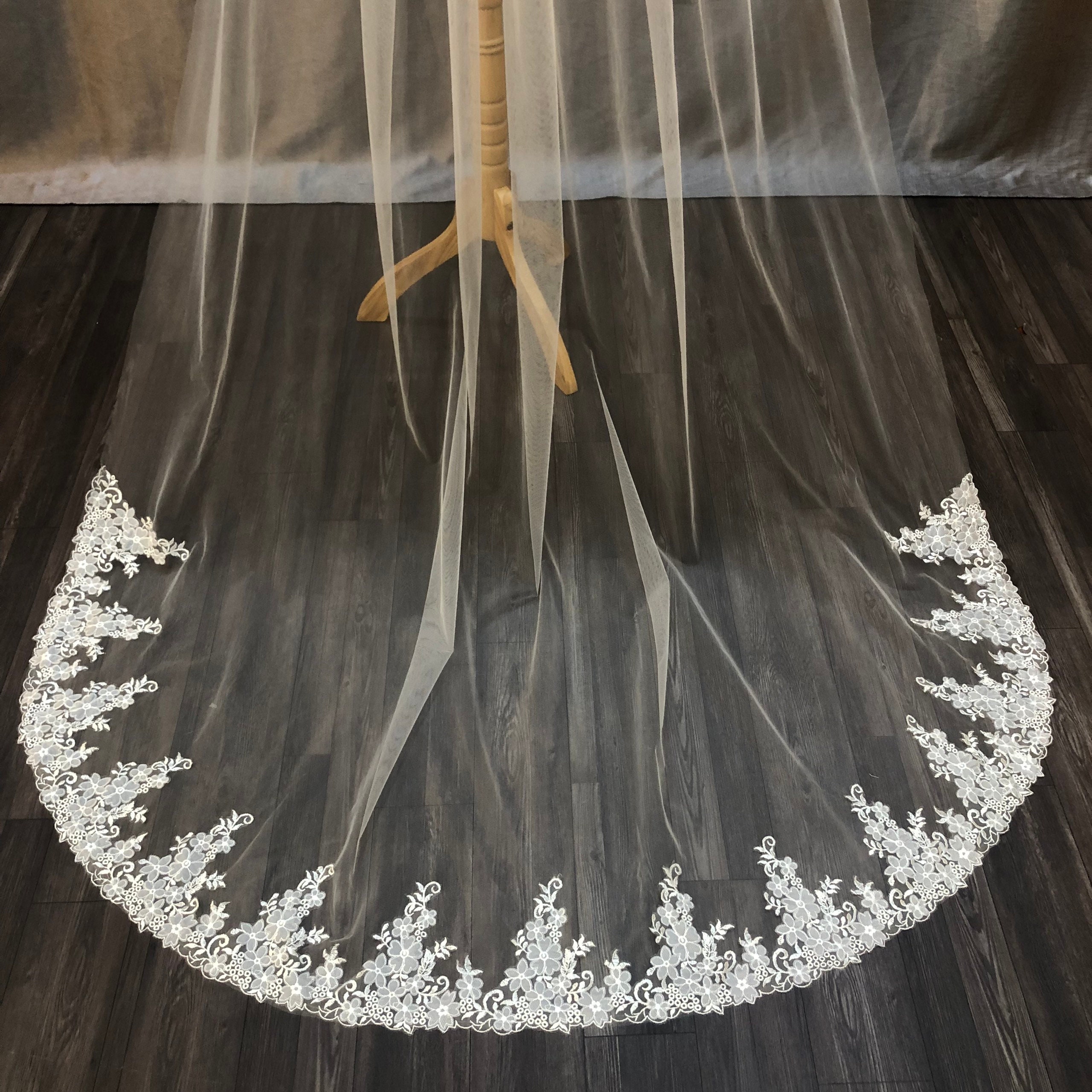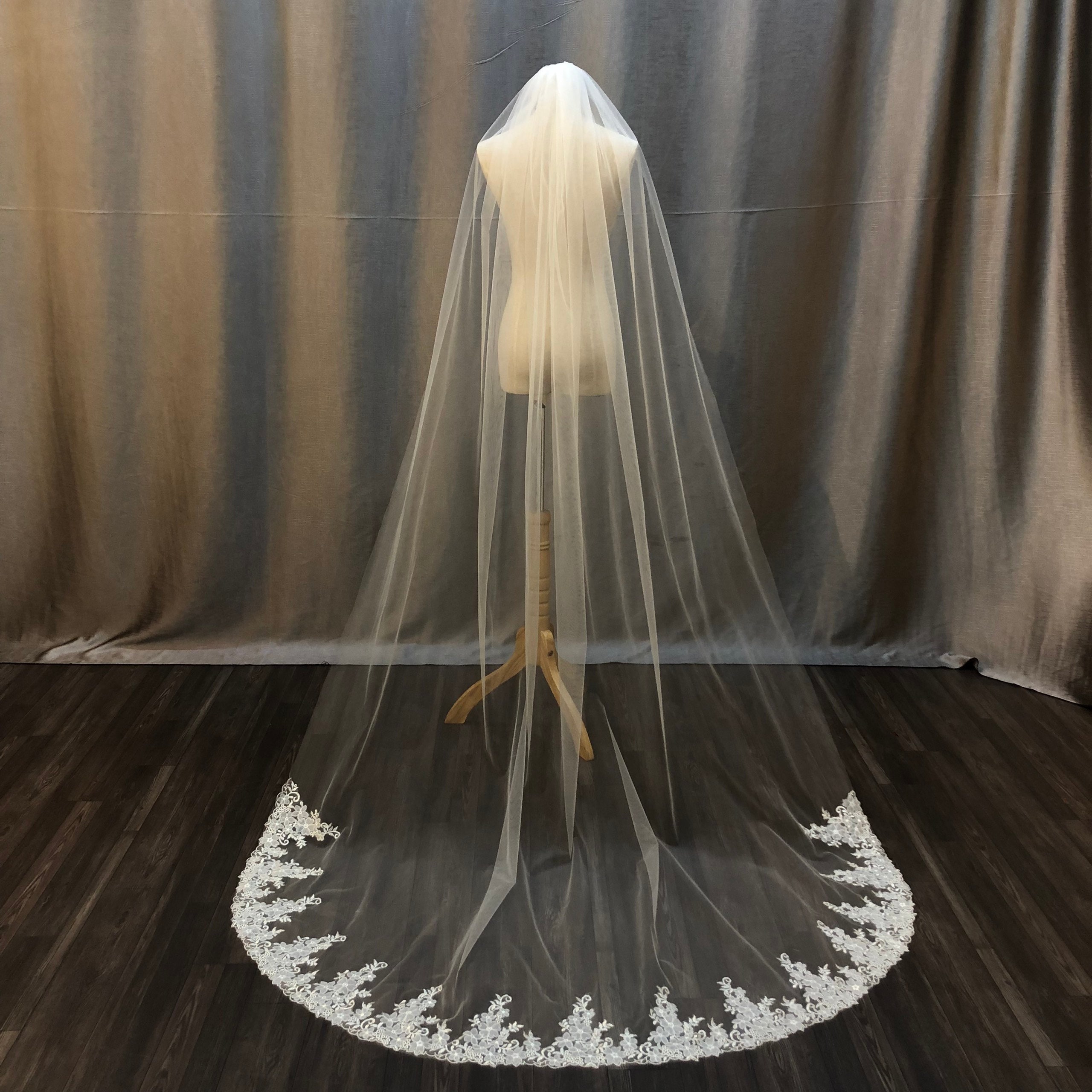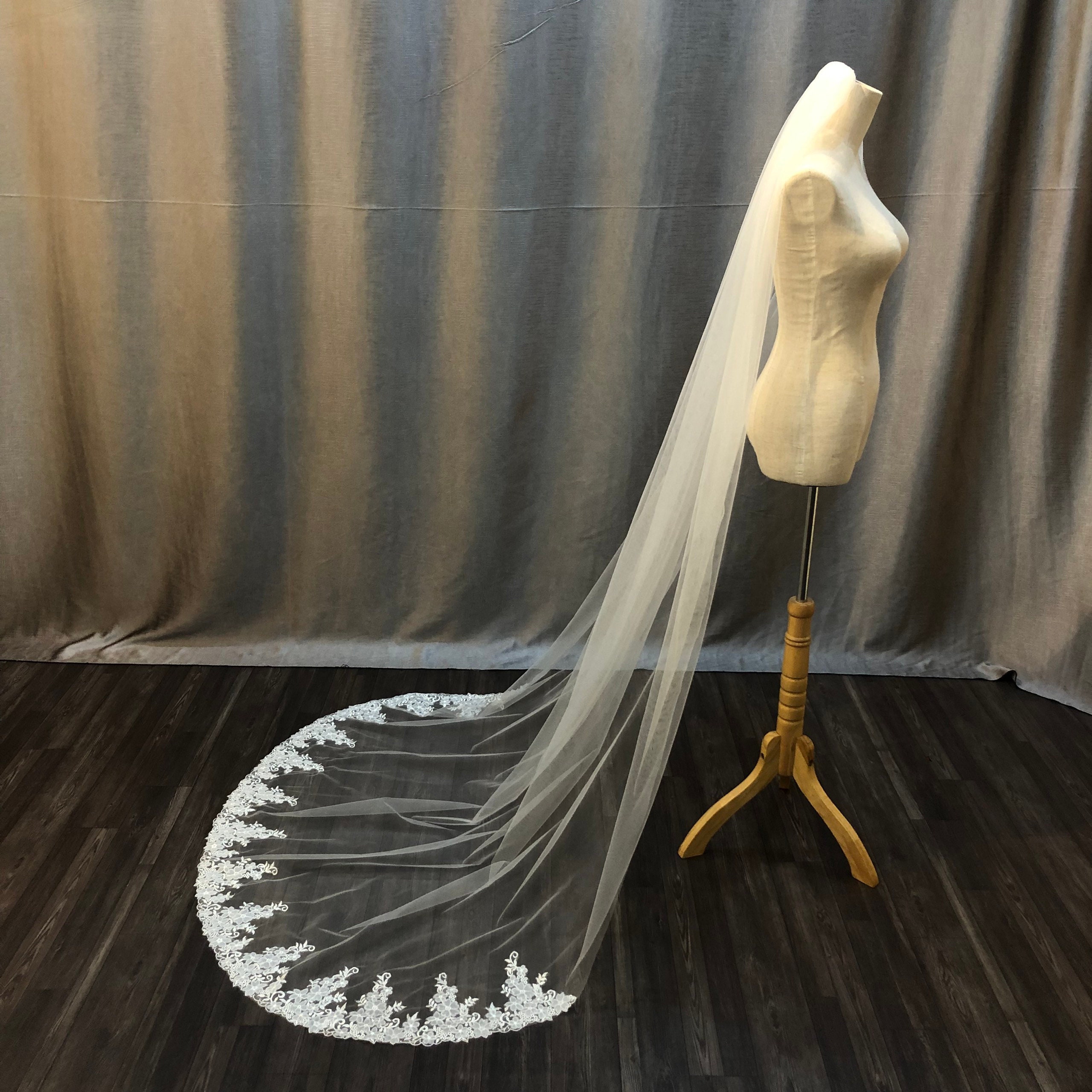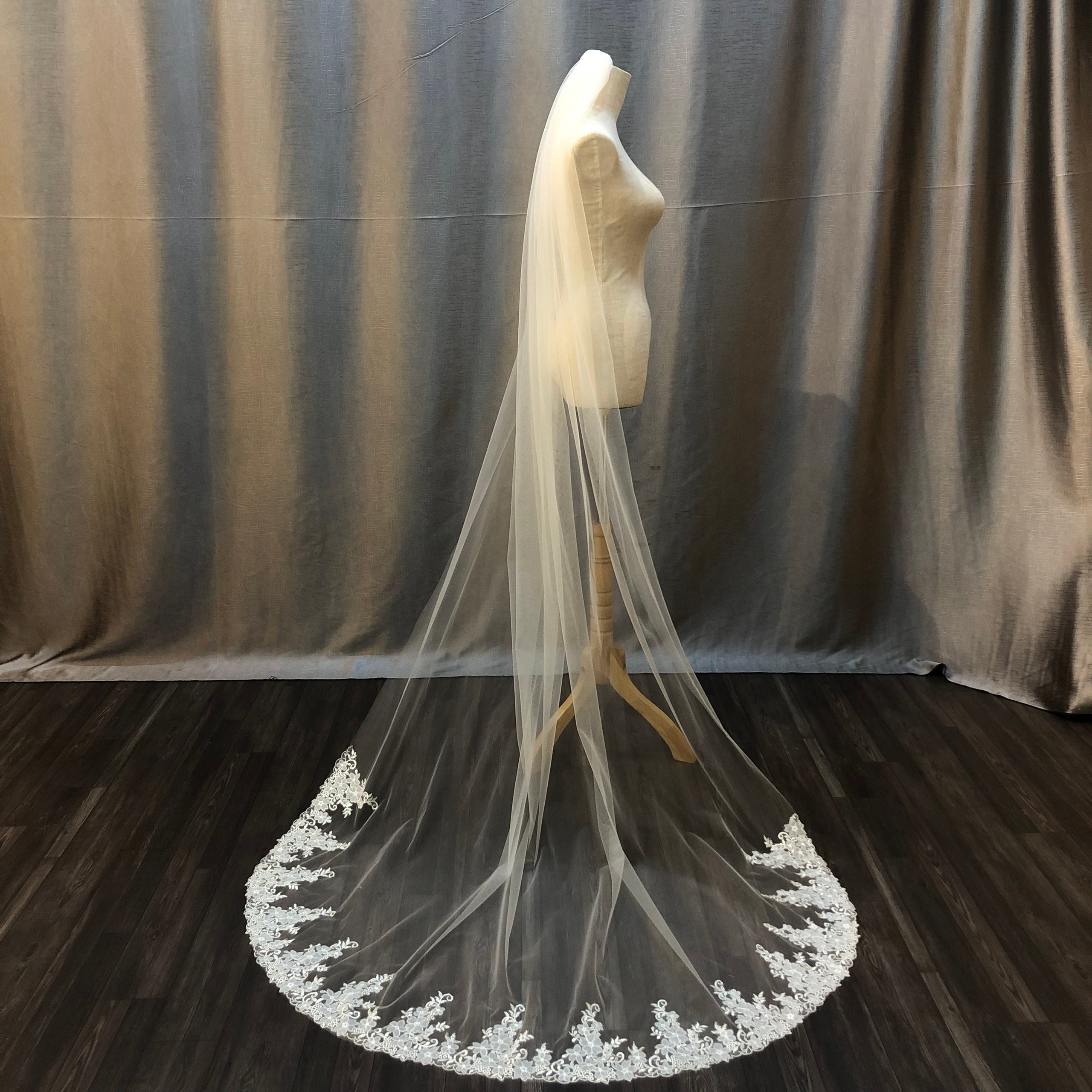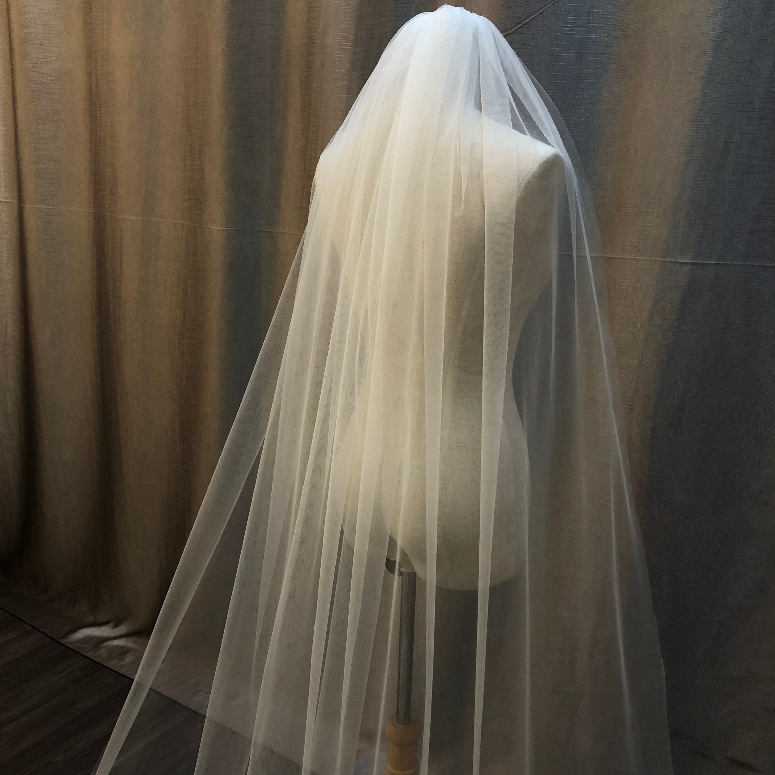 Hand-Sewn Lace Wedding Veil: Long Off-White Tulle, 100 inch