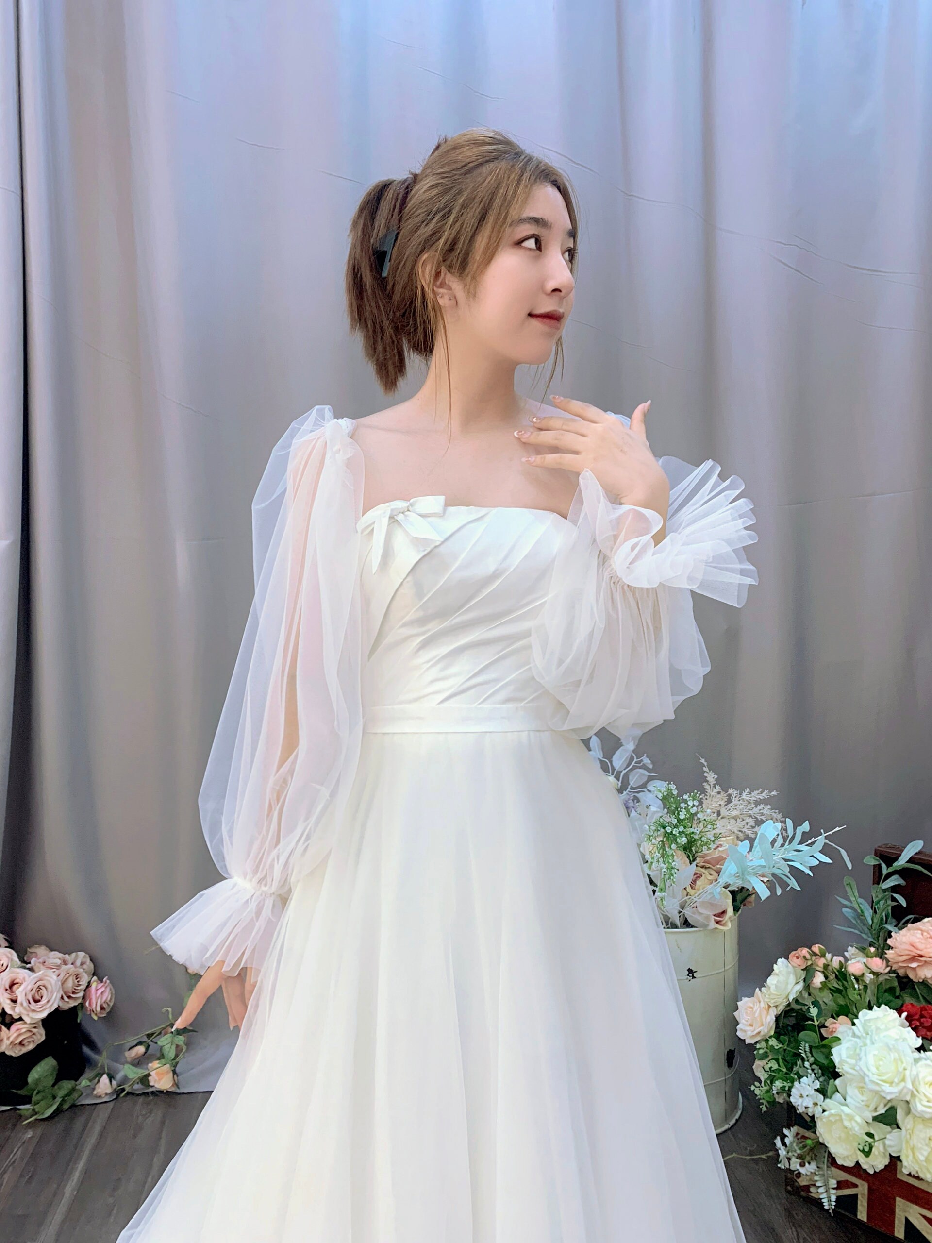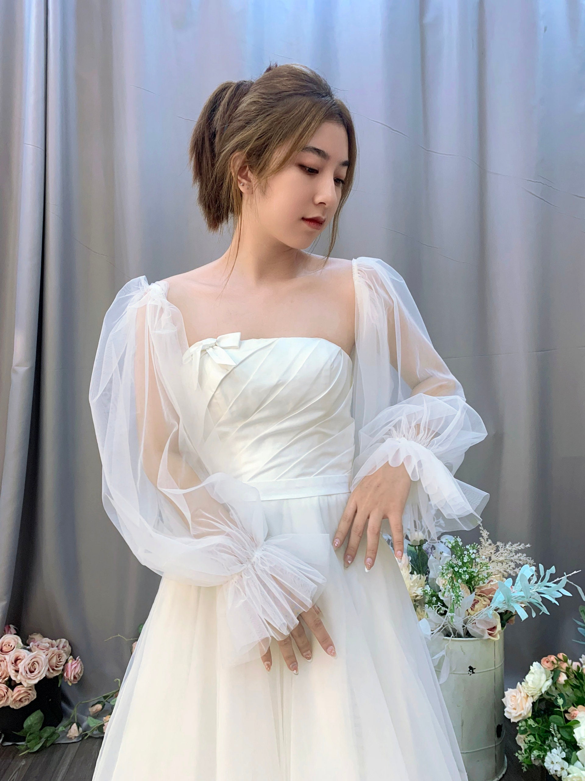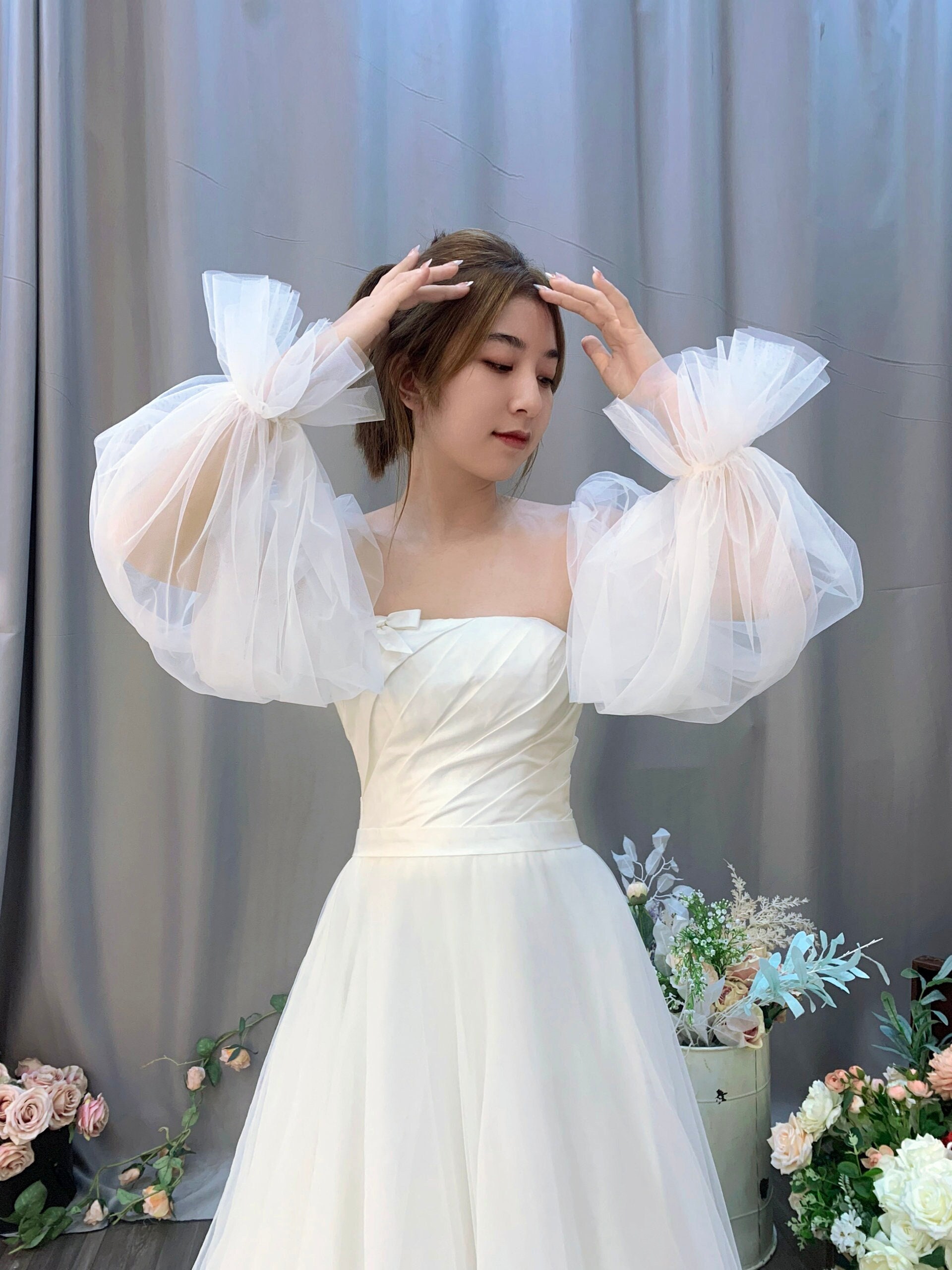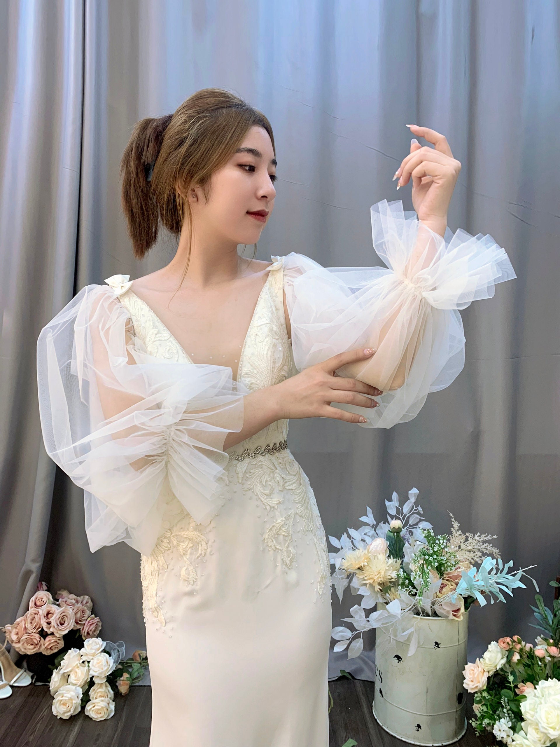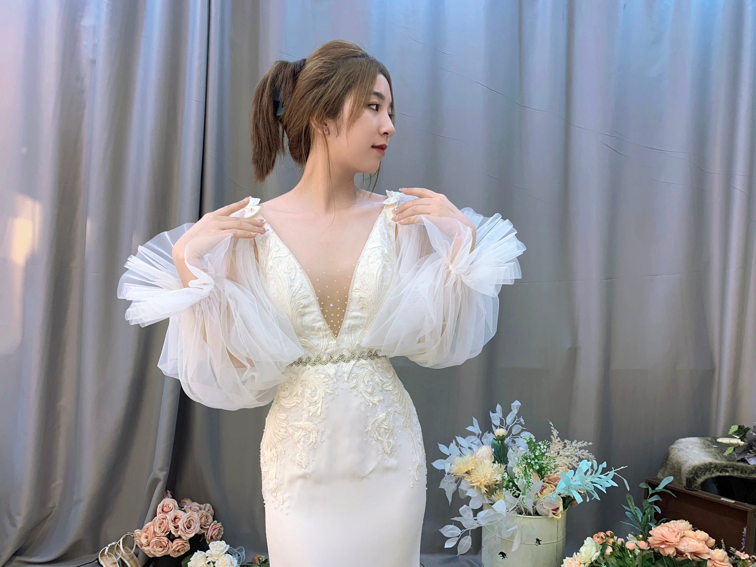 Elevate Your Bridal Look with Tulle Detachable Sleeves: Unveil Elegance and Ease!